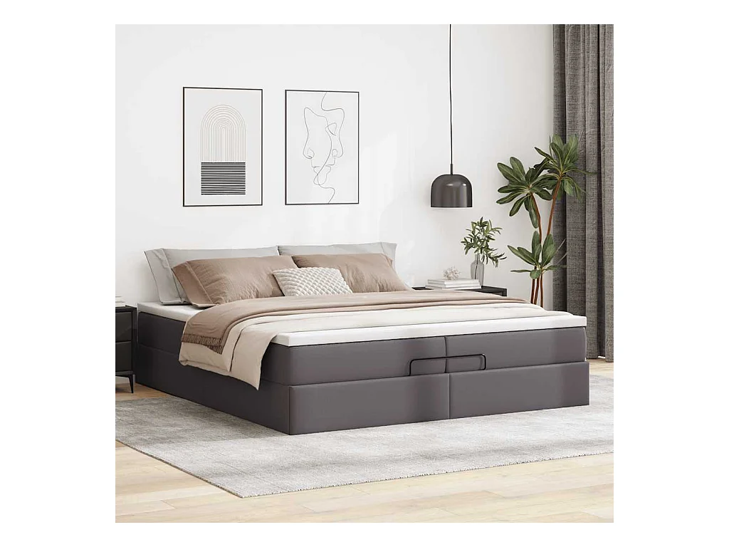 Cadre de lit ottoman avec matelas gris 200x200 cm similicuir