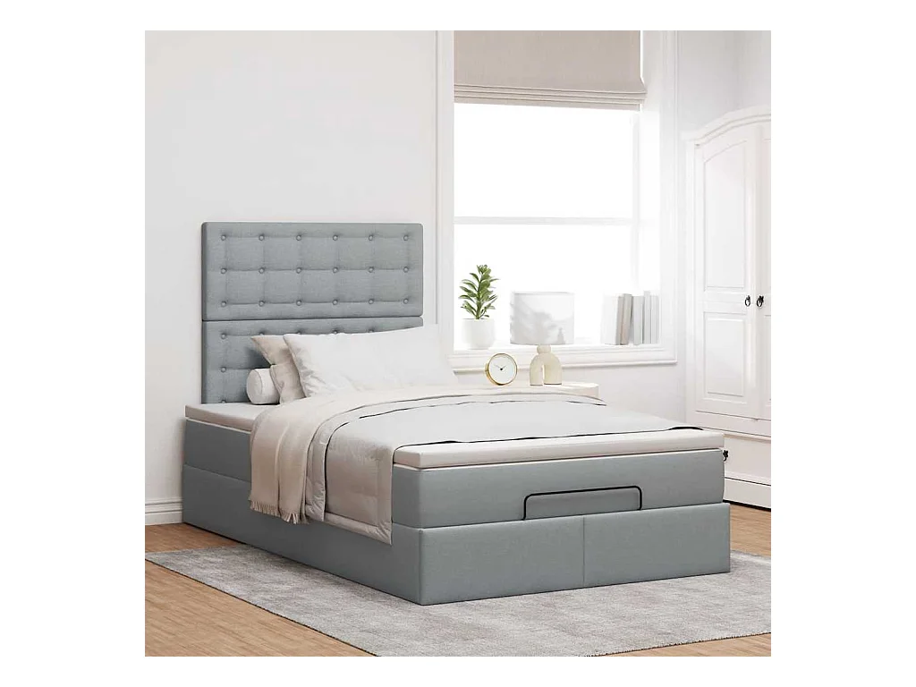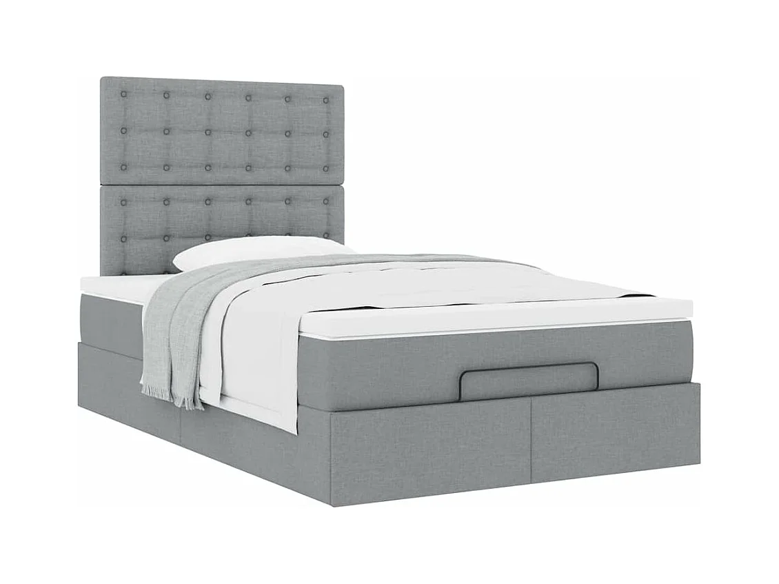 Cadre de lit ottoman avec matelas gris clair 120x190 cm tissu