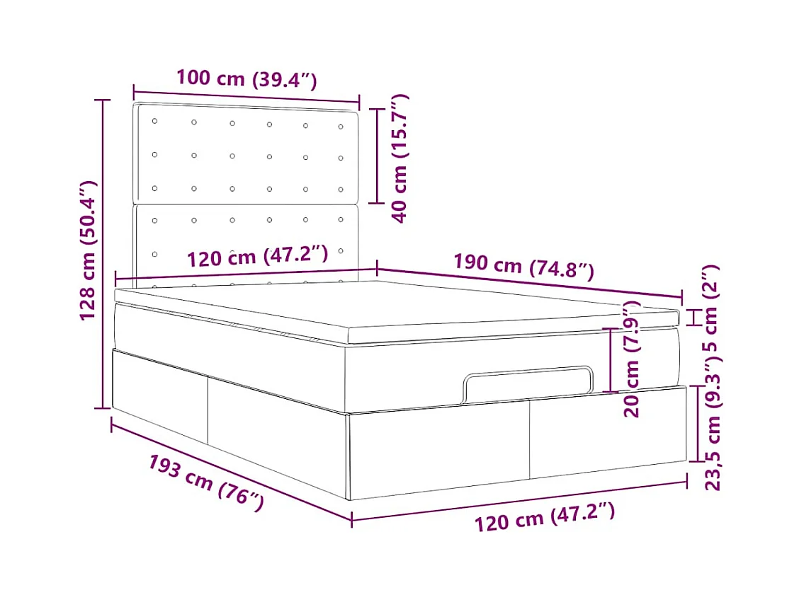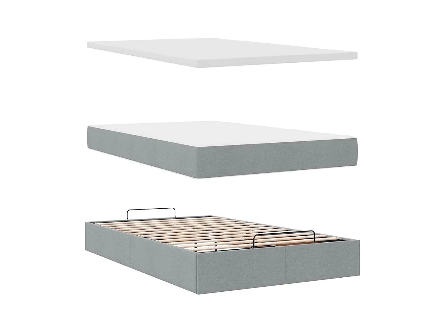 Cadre de lit ottoman avec matelas gris clair 120x190 cm tissu