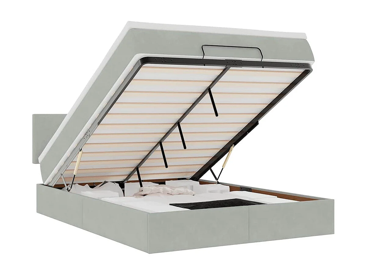 Cadre de lit ottoman avec matelas gris clair 140x200 cm velours
