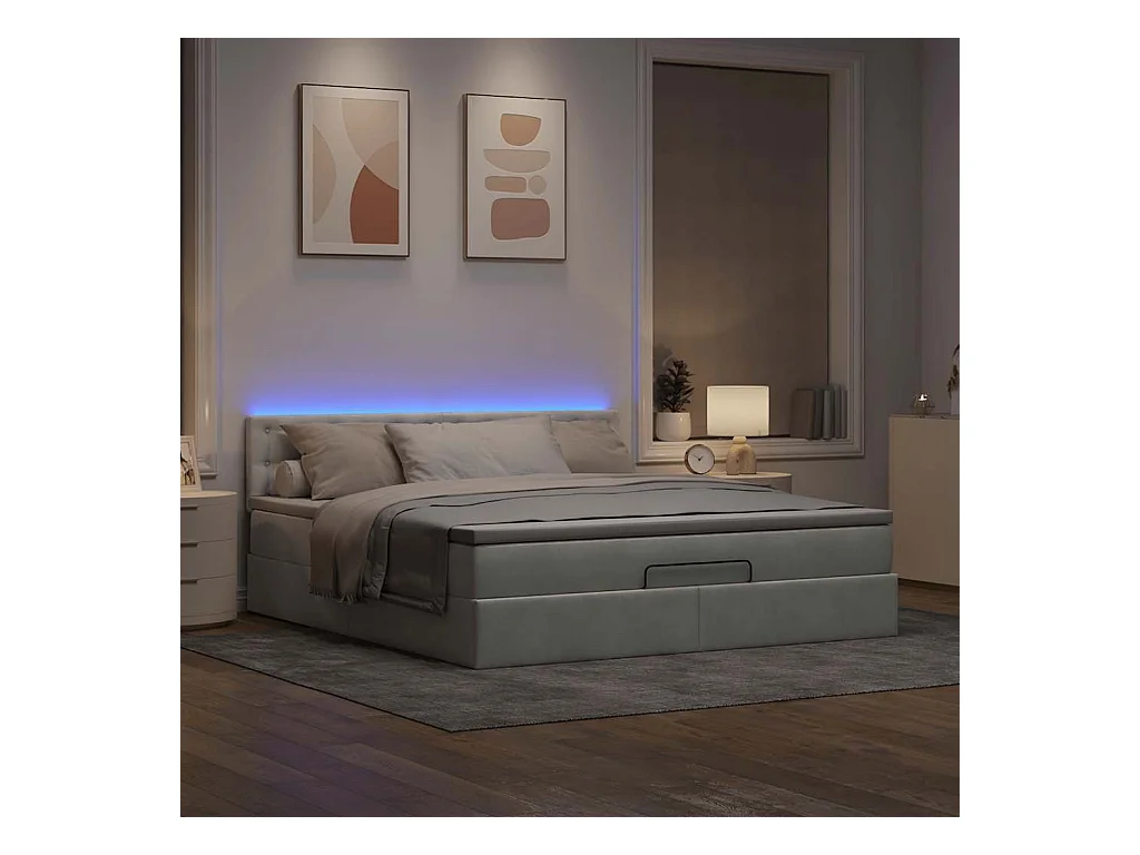 Cadre de lit ottoman et matelas gris clair 160x200cm velours