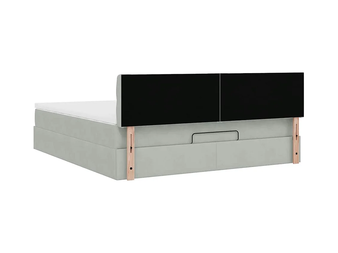 Cadre de lit ottoman et matelas gris clair 160x200cm velours
