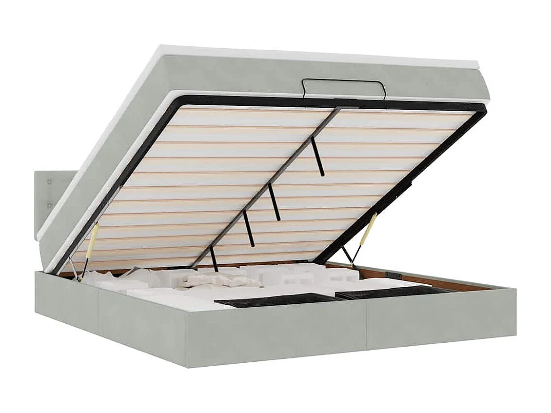 Cadre de lit ottoman avec matelas gris clair 180x200 cm velours