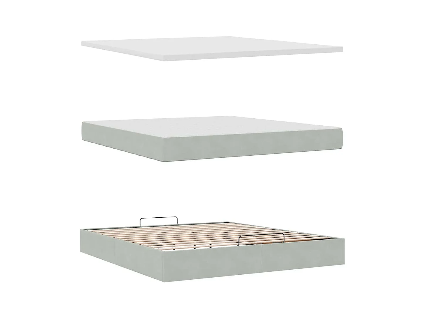 Cadre de lit ottoman et matelas gris clair 180x200cm velours