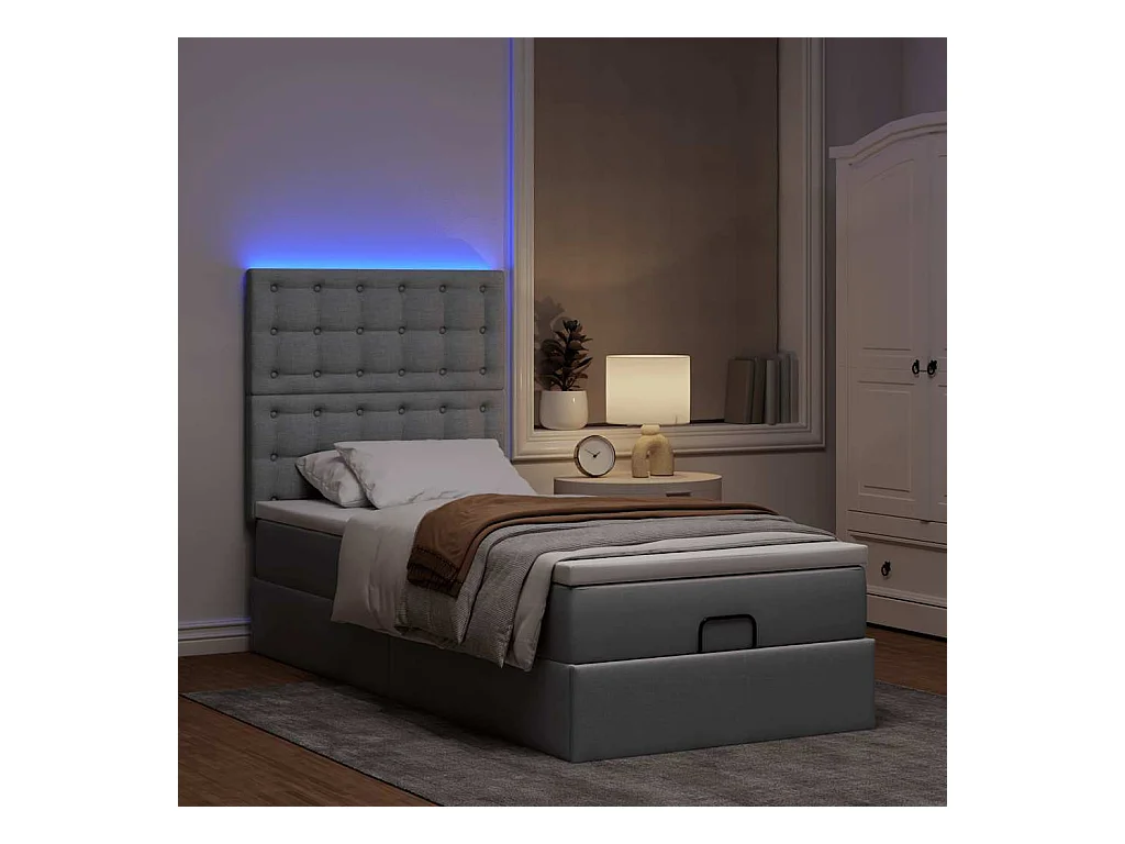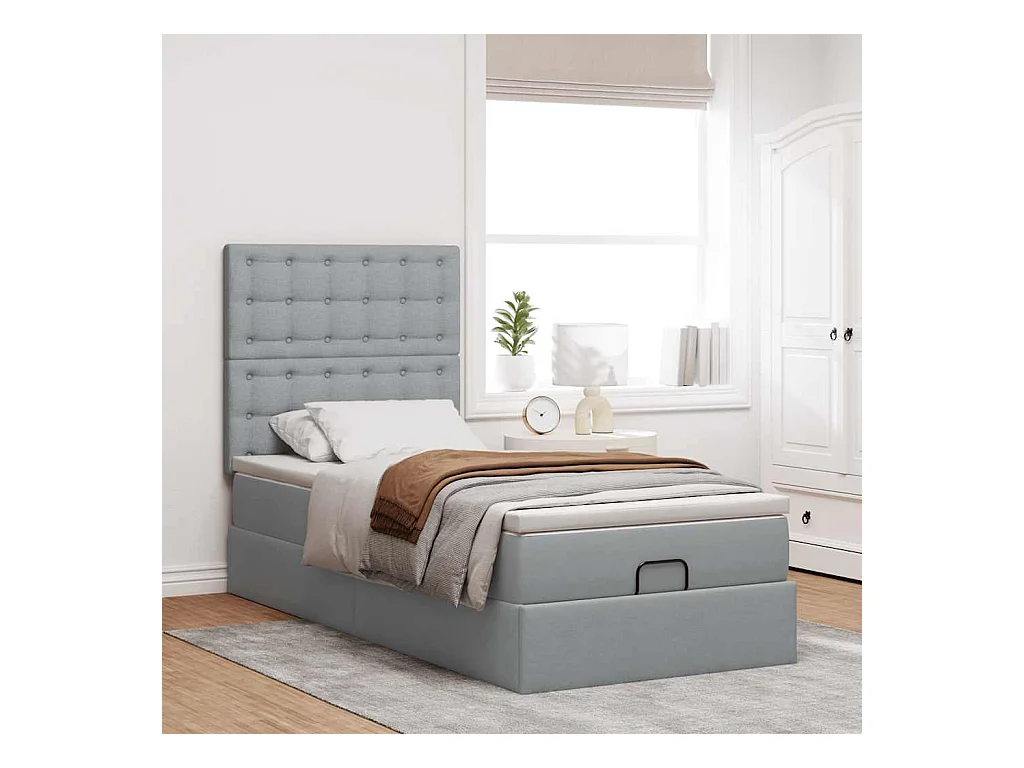 Cadre de lit ottoman avec matelas gris clair 80x200 cm tissu