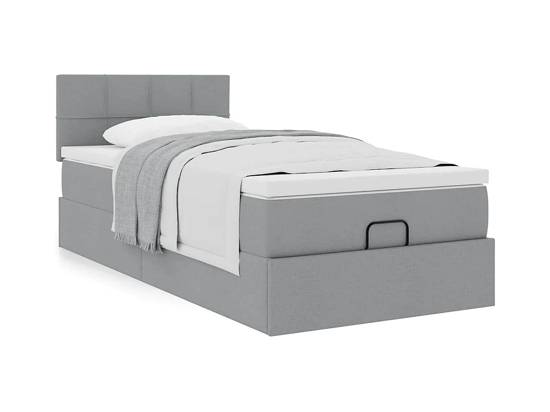 Cadre de lit ottoman avec matelas gris clair 80x200 cm tissu