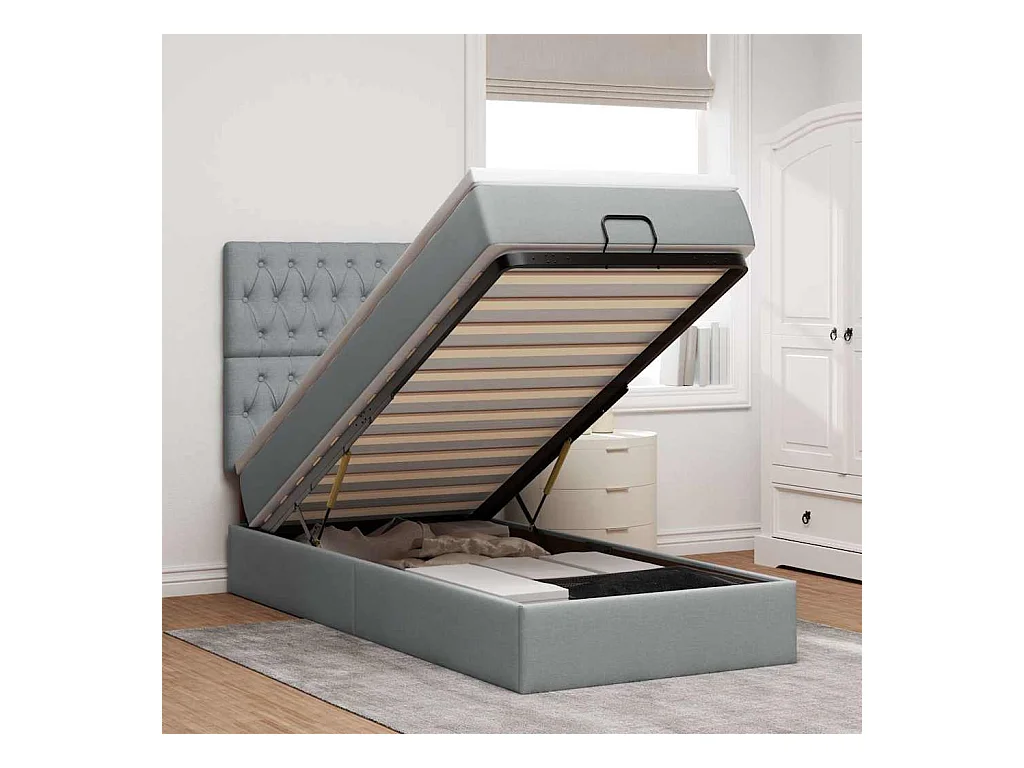 Cadre de lit ottoman avec matelas gris clair 80x200 cm tissu
