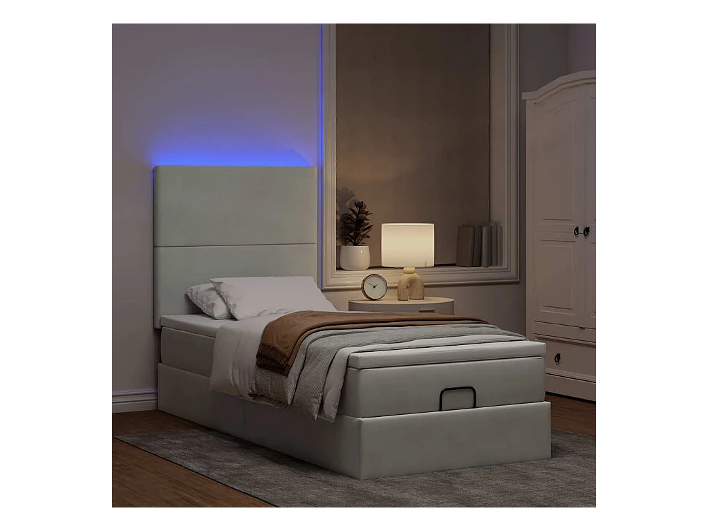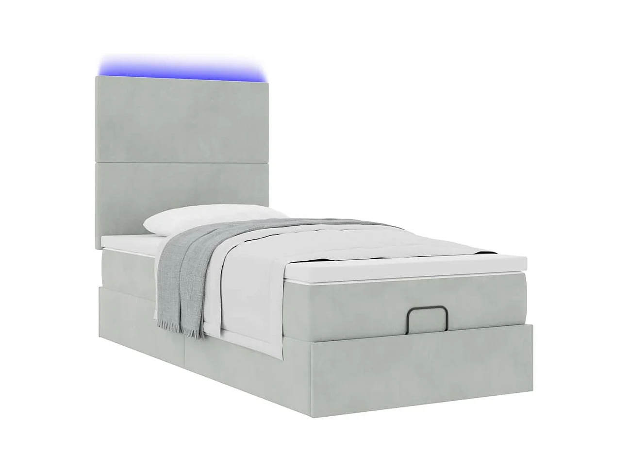 Cadre de lit ottoman avec matelas gris clair 80x200 cm velours