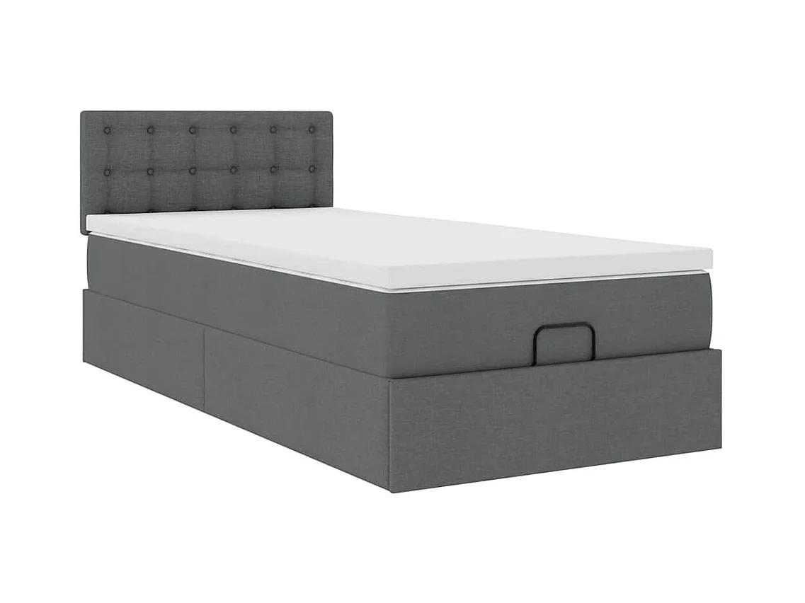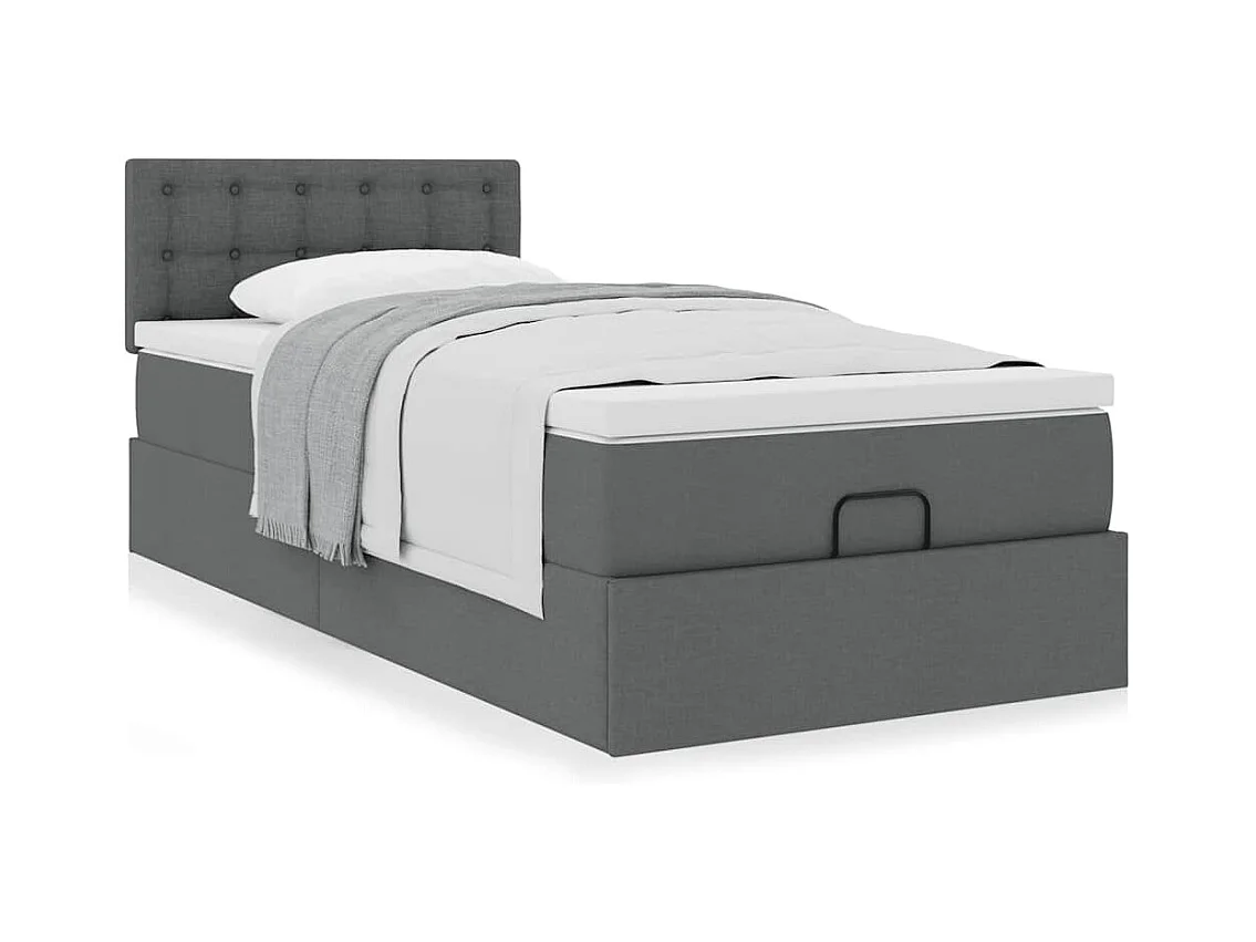 Cadre de lit ottoman avec matelas gris foncé 100x200 cm tissu
