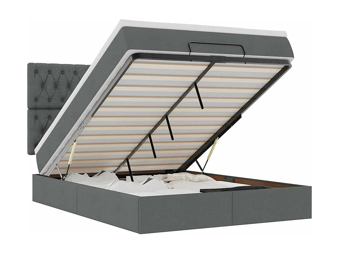 Cadre de lit ottoman avec matelas gris foncé 140x190 cm tissu