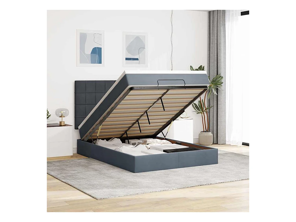 Cadre de lit ottoman avec matelas gris foncé 140x190 cm velours