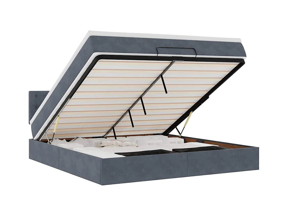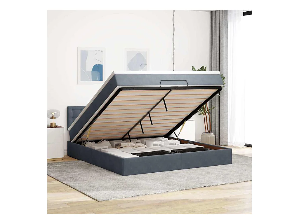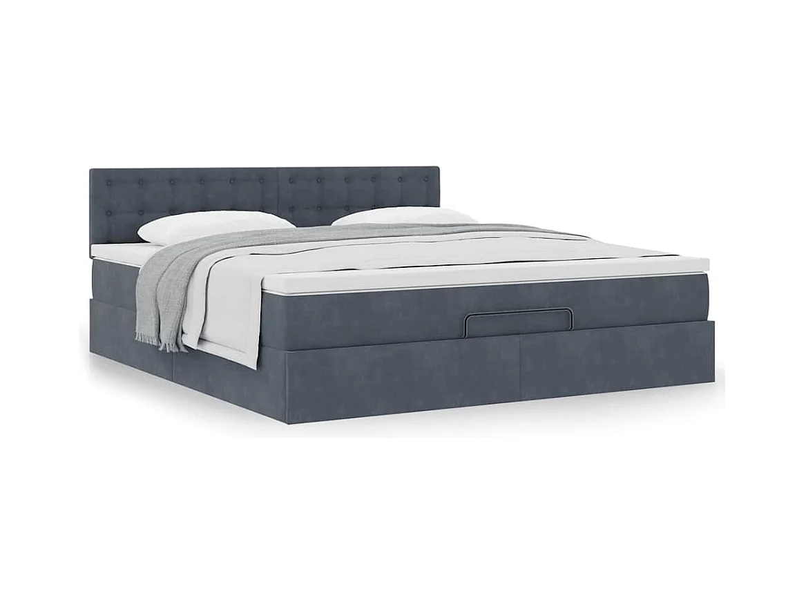 Cadre de lit ottoman avec matelas gris foncé 160x200cm velours