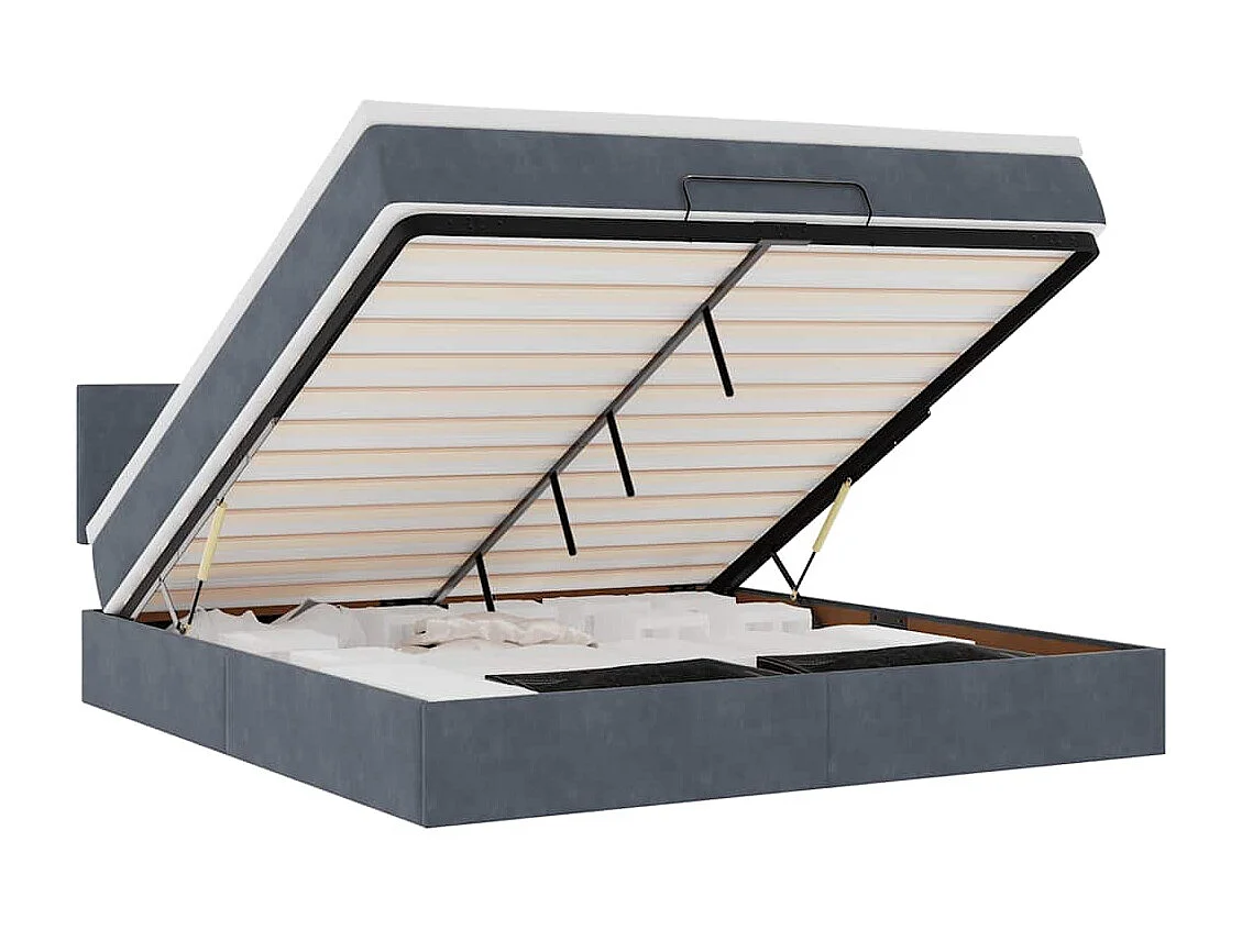 Cadre de lit ottoman avec matelas gris foncé 160x200cm velours