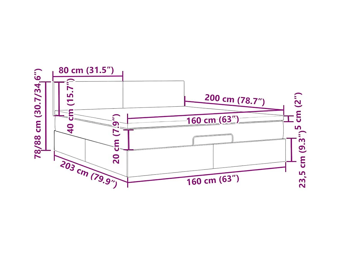 Cadre de lit ottoman avec matelas gris foncé 160x200cm velours