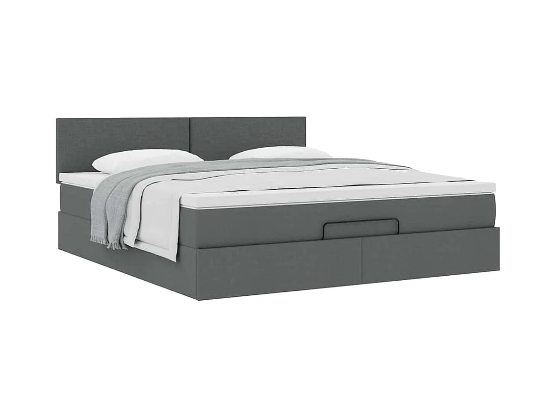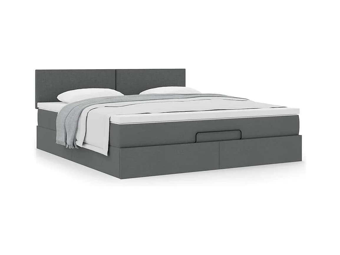 Cadre de lit ottoman avec matelas gris foncé 160x200cm tissu