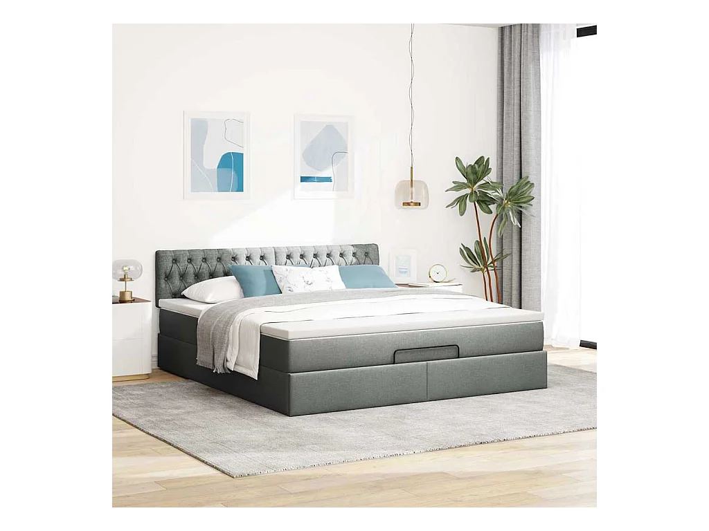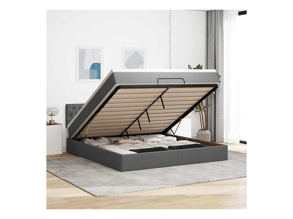 Cadre de lit ottoman avec matelas gris foncé 160x200cm tissu