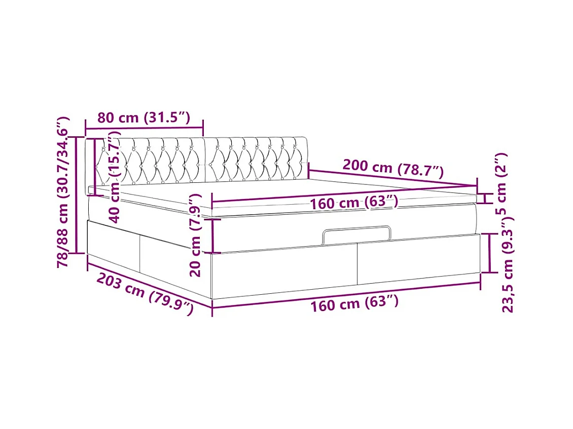 Cadre de lit ottoman avec matelas gris foncé 160x200cm velours