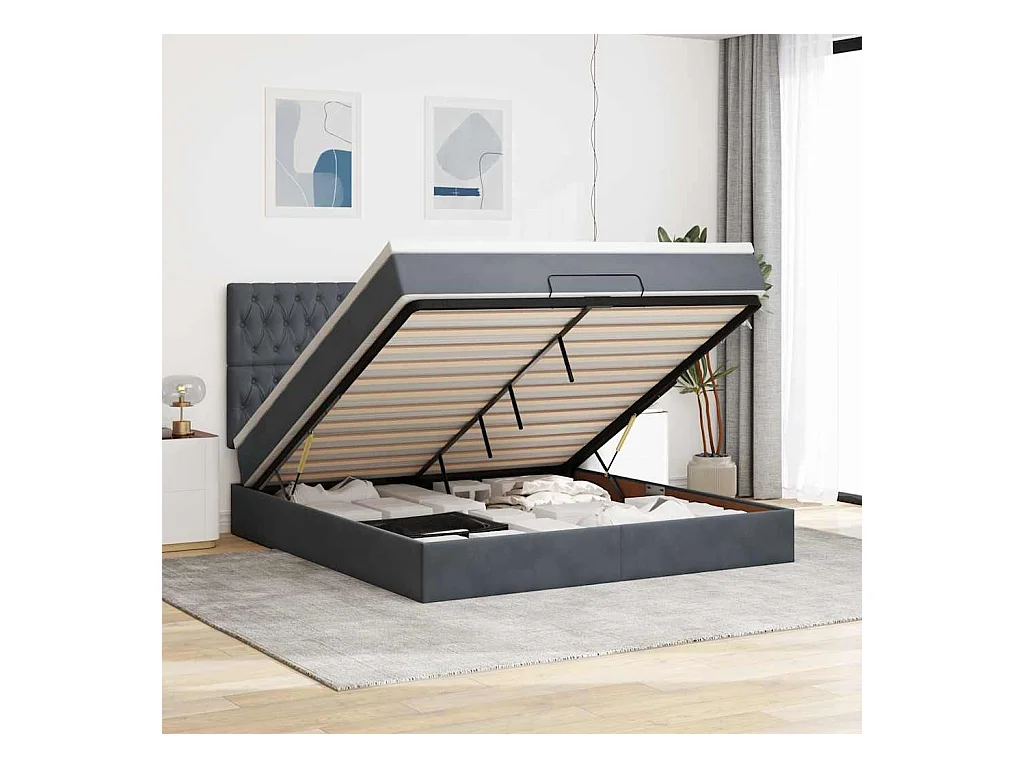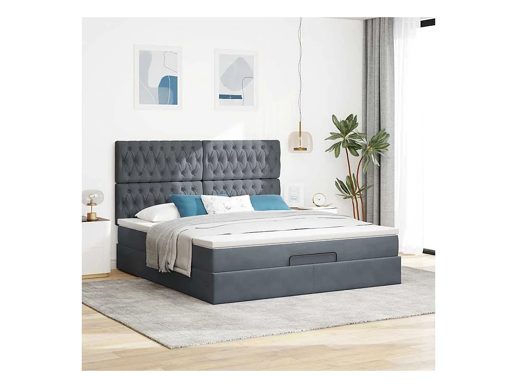 Cadre de lit ottoman avec matelas gris foncé 160x200cm velours