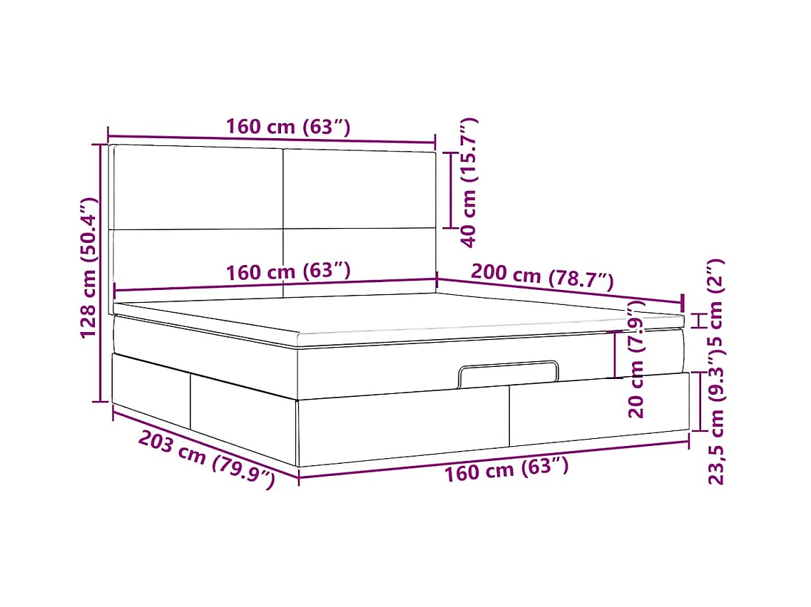 Cadre de lit ottoman avec matelas gris foncé 160x200cm velours