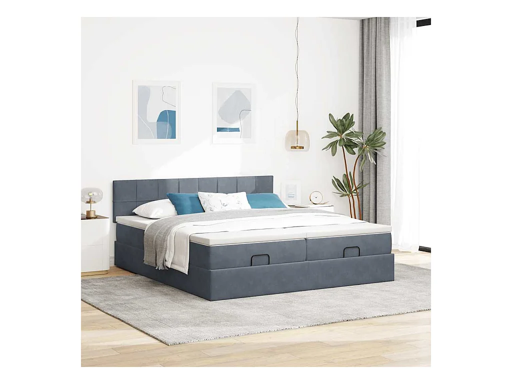 Cadre de lit ottoman avec matelas gris foncé 160x200cm velours