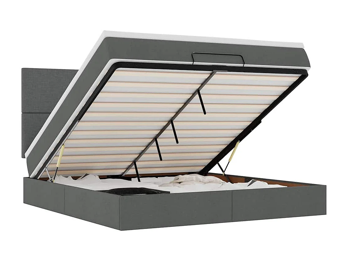 Cadre de lit ottoman avec matelas gris foncé 180x200 cm tissu
