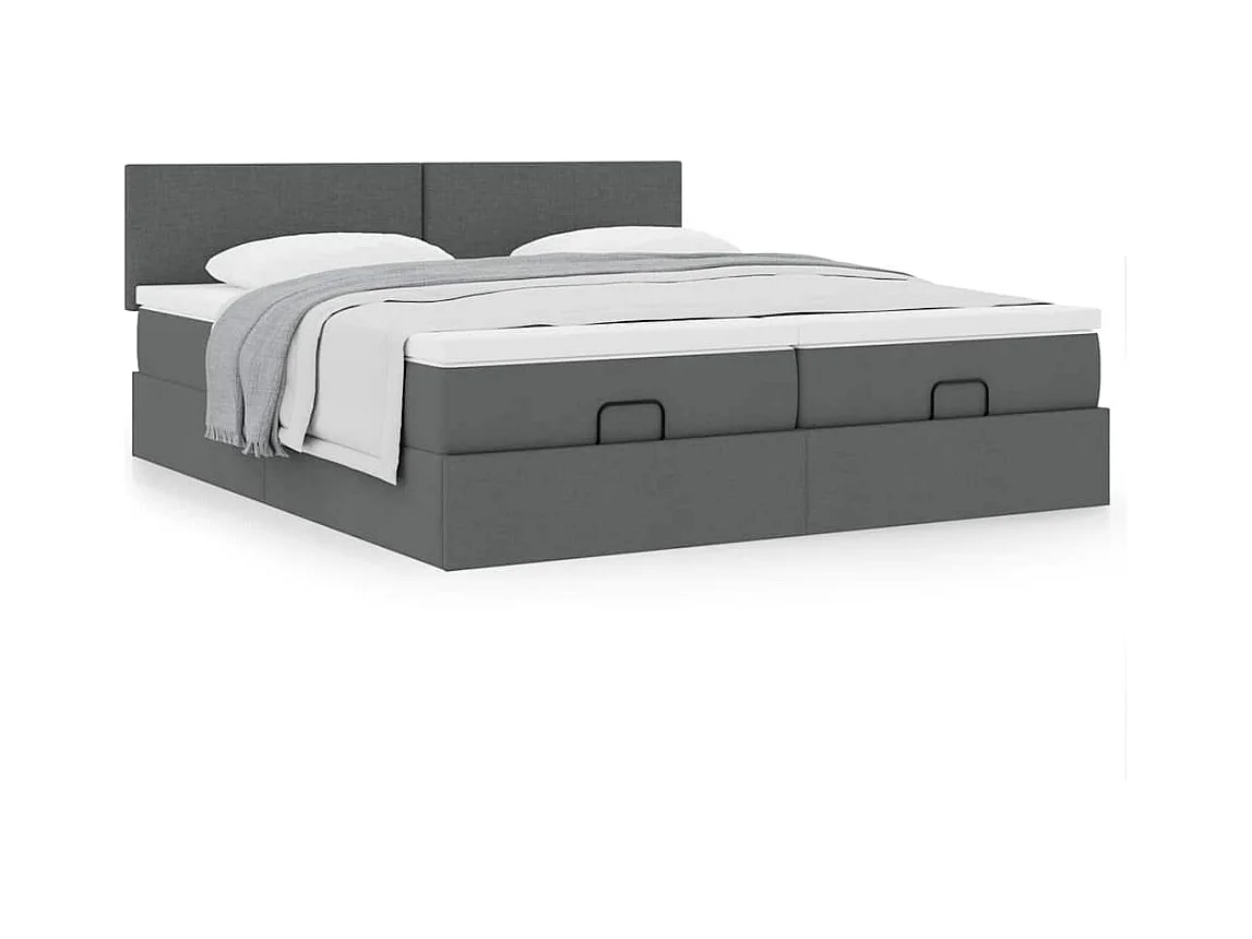 Cadre de lit ottoman avec matelas gris foncé 180x200cm tissu
