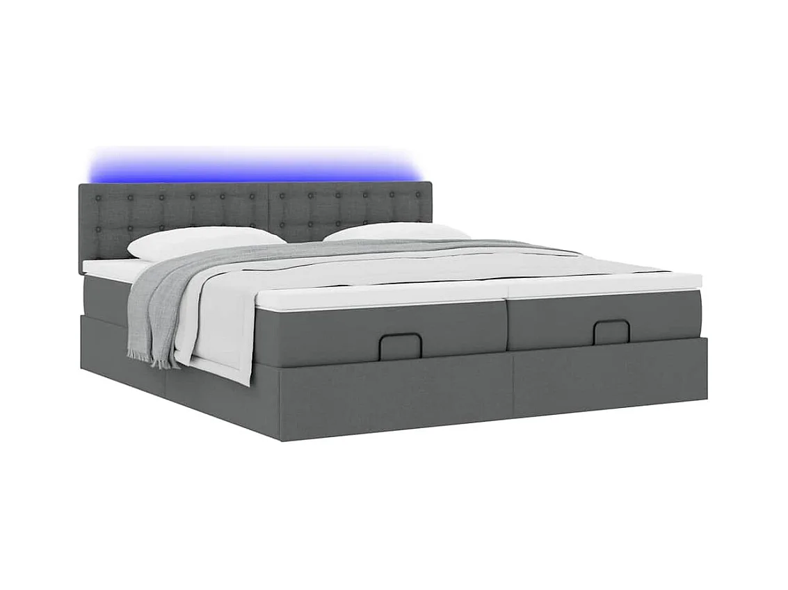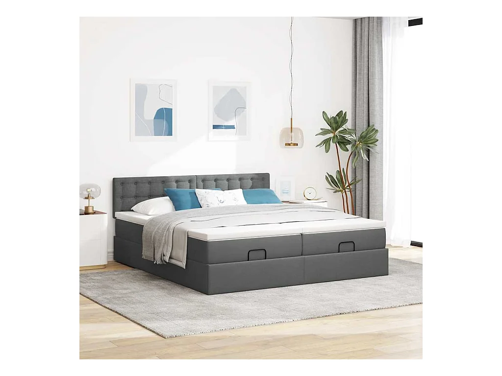 Cadre de lit ottoman avec matelas gris foncé 180x200cm tissu