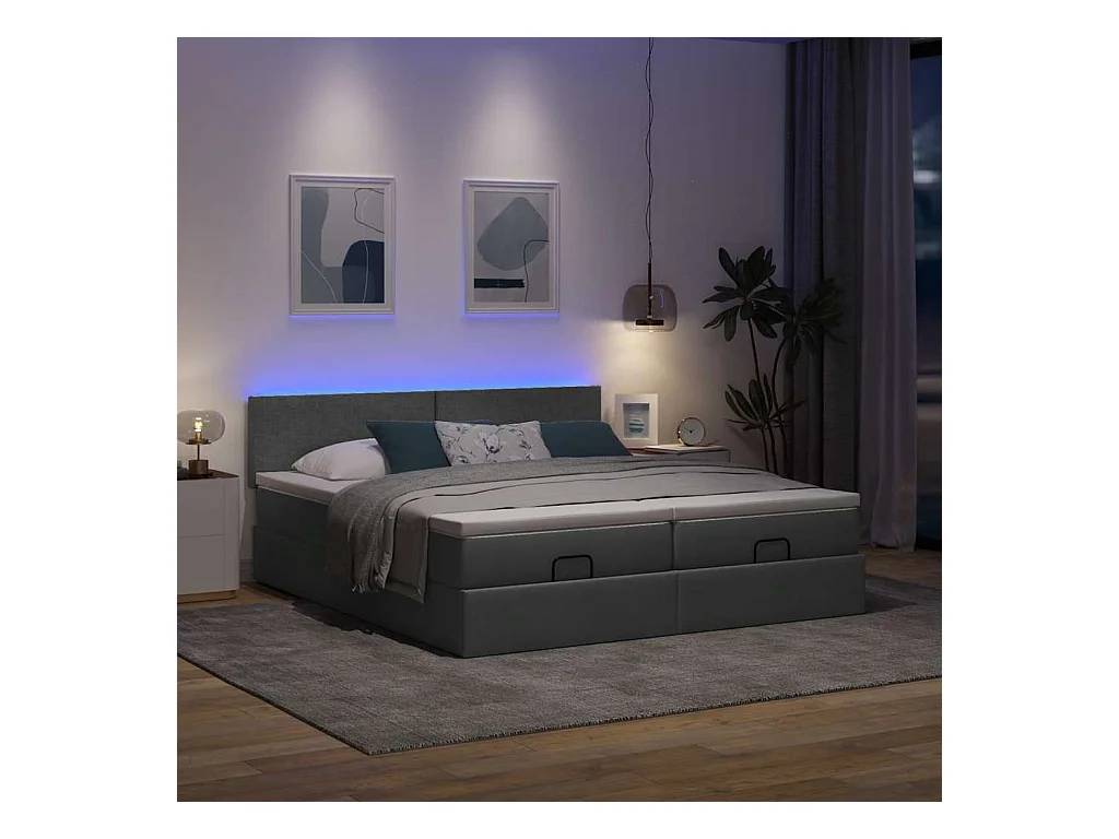 Cadre de lit ottoman et matelas gris clair 180x200cm tissu
