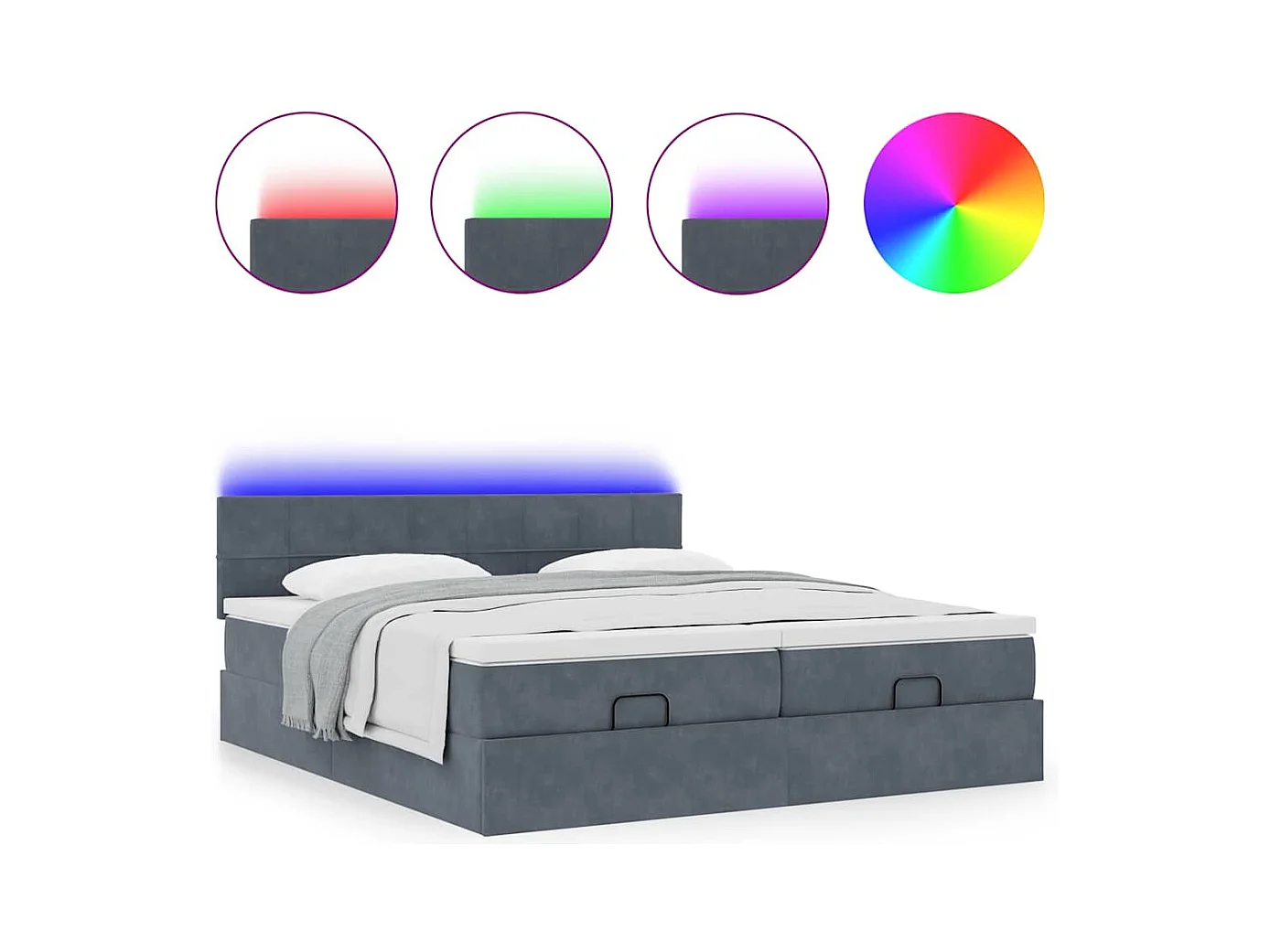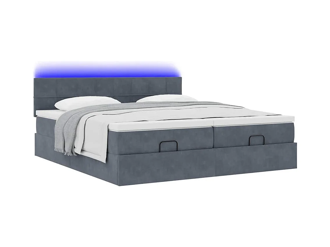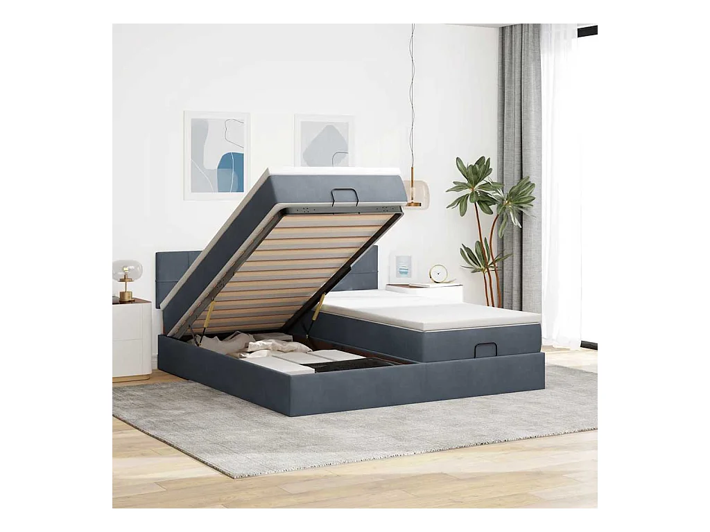 Cadre de lit ottoman avec matelas gris foncé 180x200cm velours