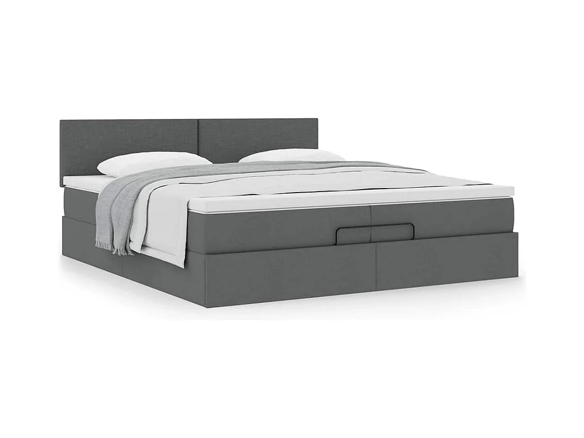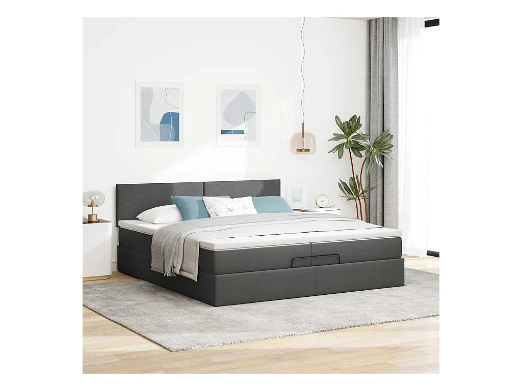 Cadre de lit ottoman avec matelas gris foncé 200x200cm tissu