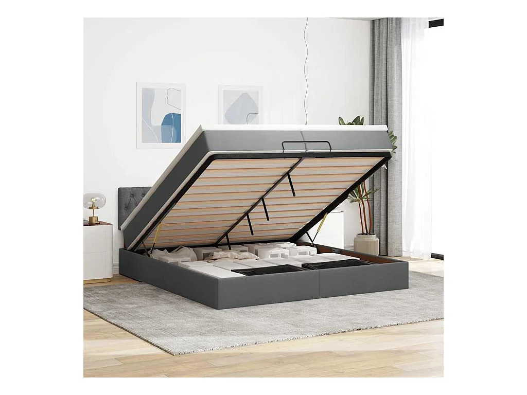 Cadre de lit ottoman avec matelas gris foncé 200x200cm tissu
