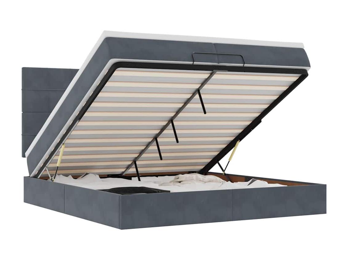 Cadre de lit ottoman avec matelas gris foncé 200x200 cm velours