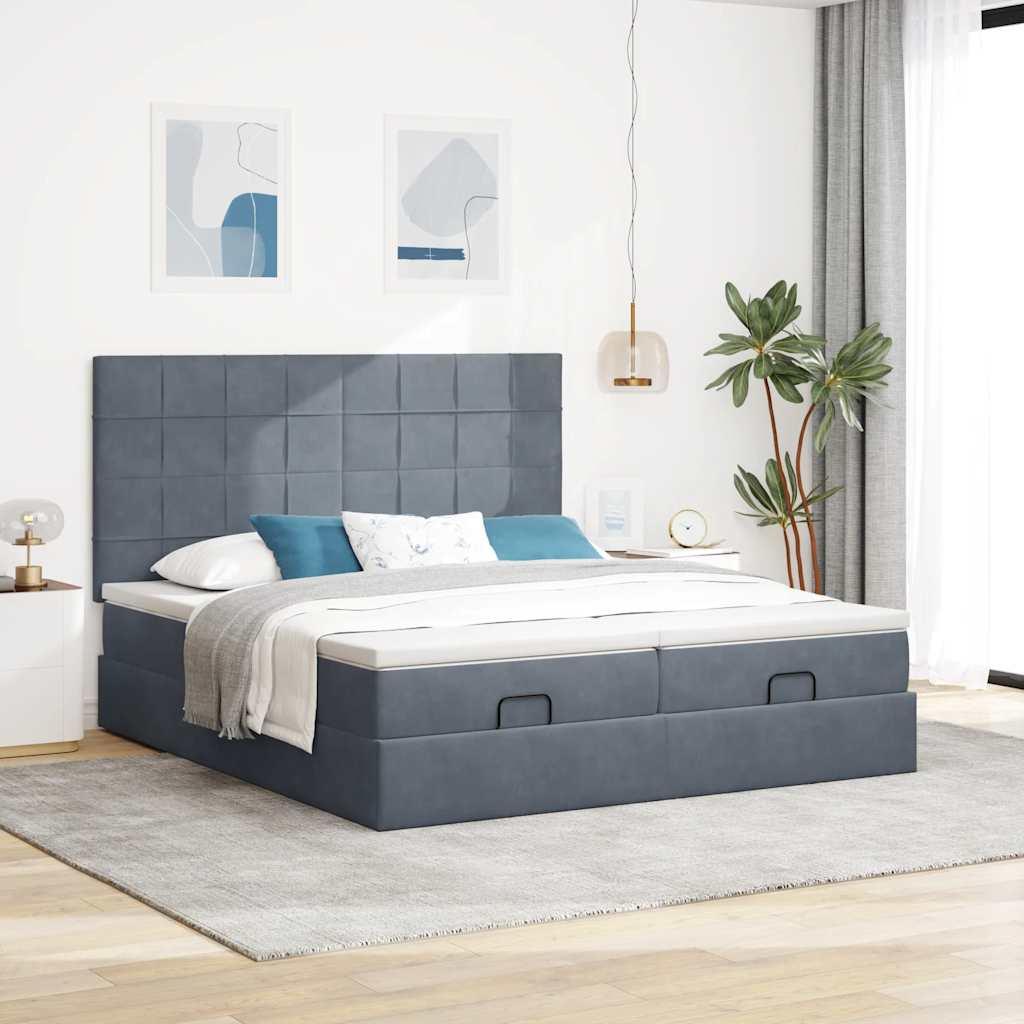 Cadre de lit ottoman avec matelas gris foncé 200x200 cm velours