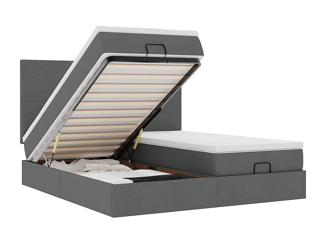 Cadre de lit ottoman avec matelas gris foncé 200x200cm tissu