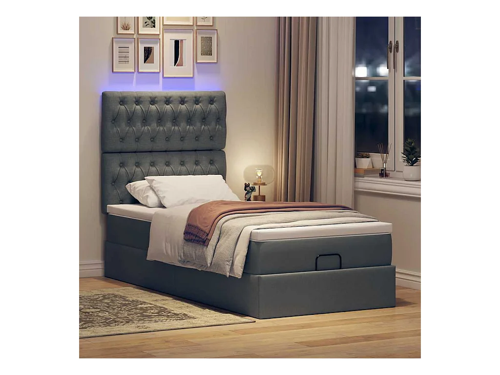 Cadre de lit ottoman avec matelas gris foncé 80x200 cm tissu