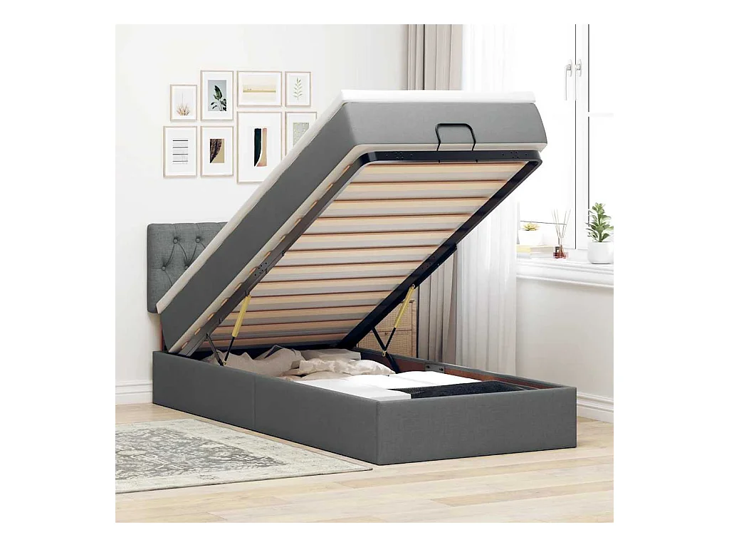 Cadre de lit ottoman avec matelas gris foncé 90x190 cm tissu