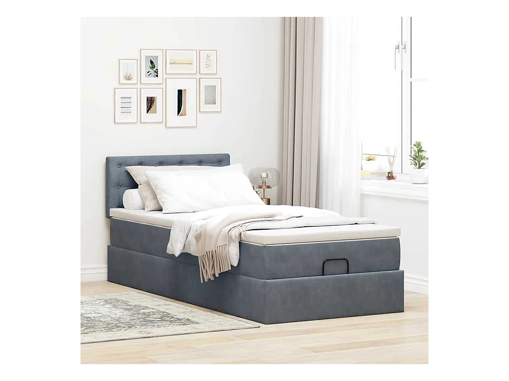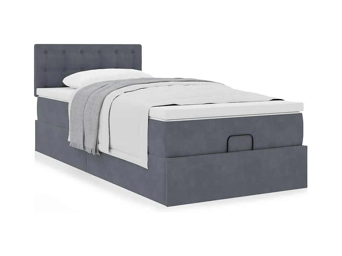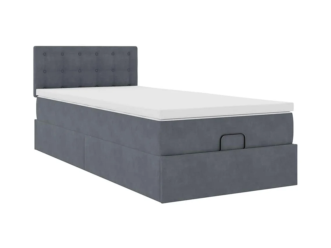 Cadre de lit ottoman avec matelas gris foncé 90x190 cm velours