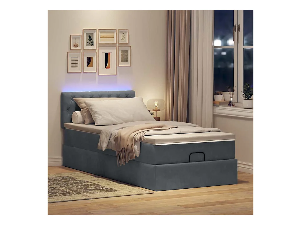Cadre de lit ottoman avec matelas gris foncé 90x190 cm velours