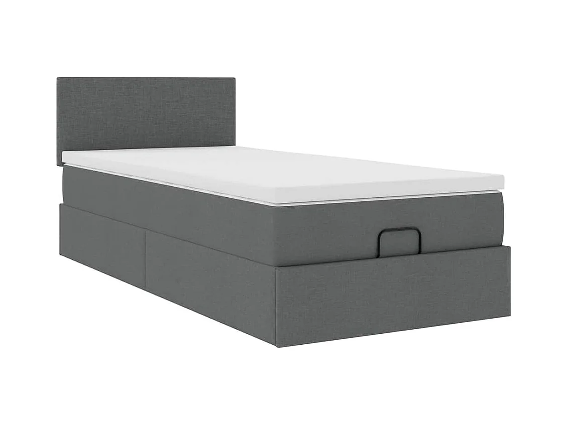 Cadre de lit ottoman avec matelas gris foncé 90x200 cm tissu