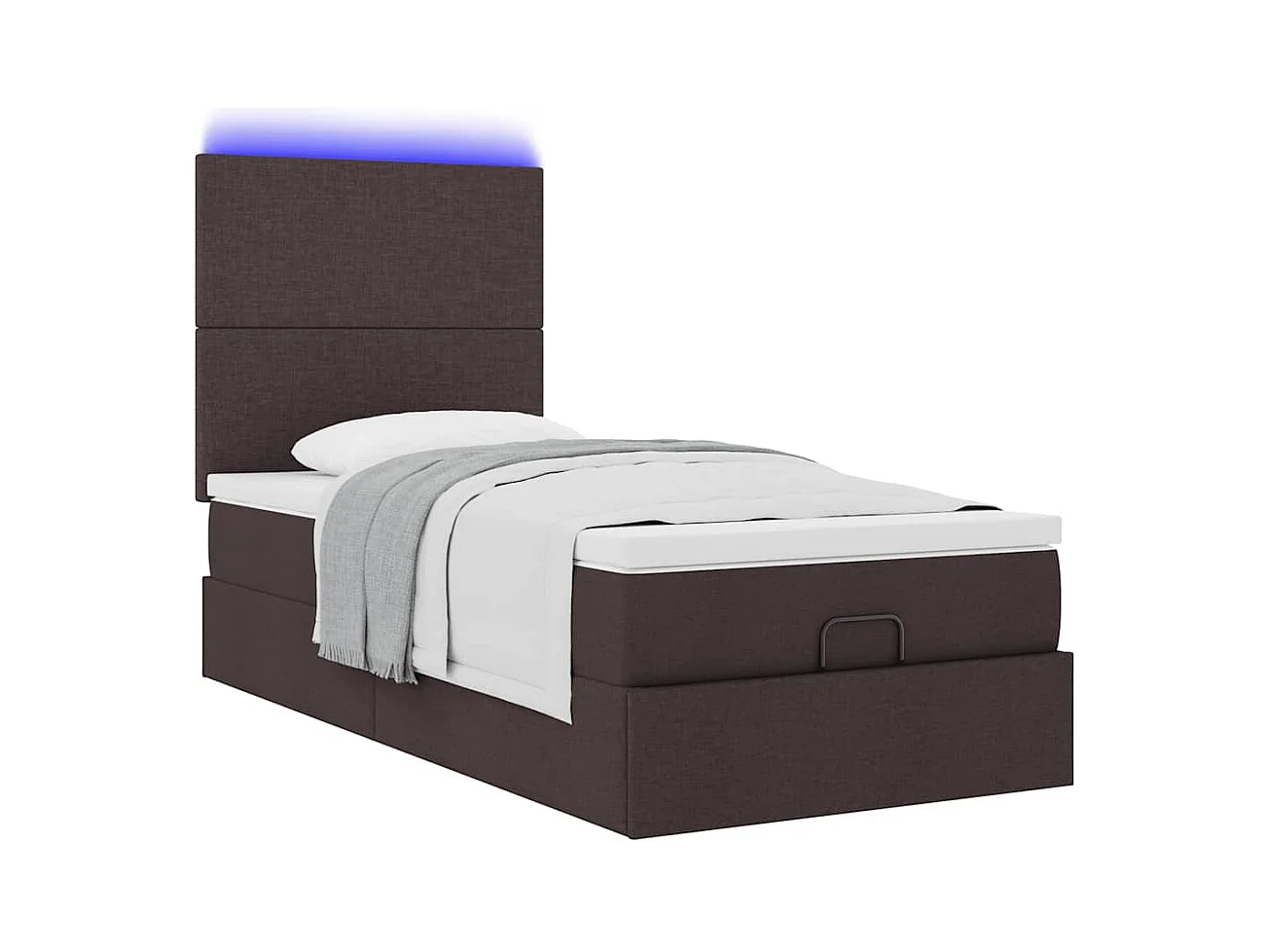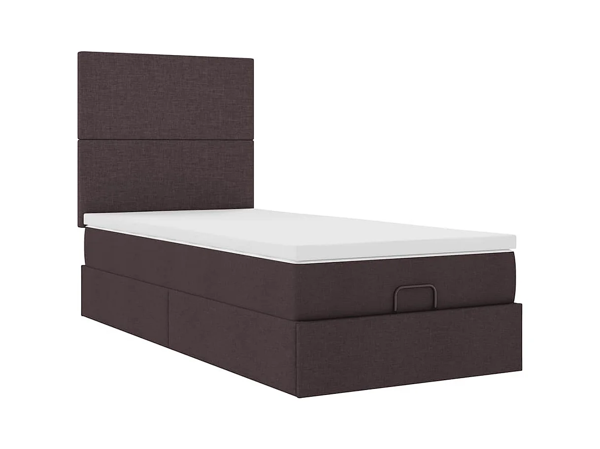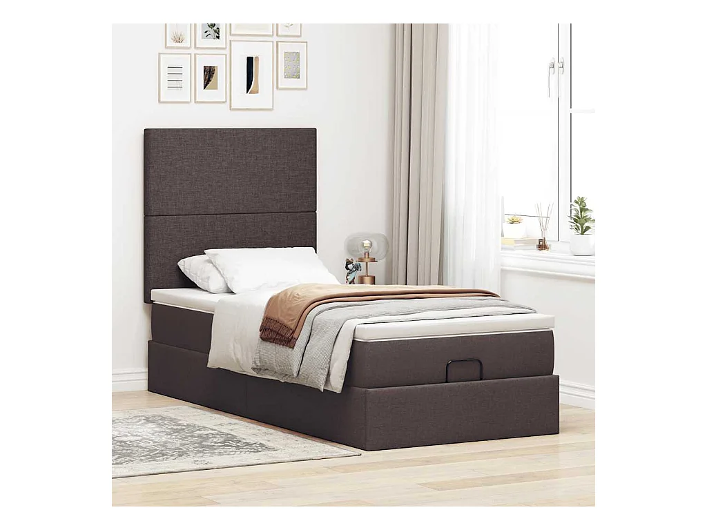 Cadre de lit ottoman avec matelas marron foncé 100x200 cm tissu