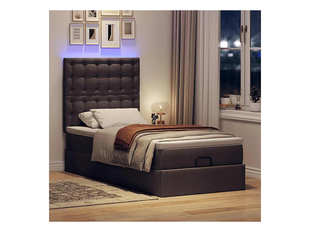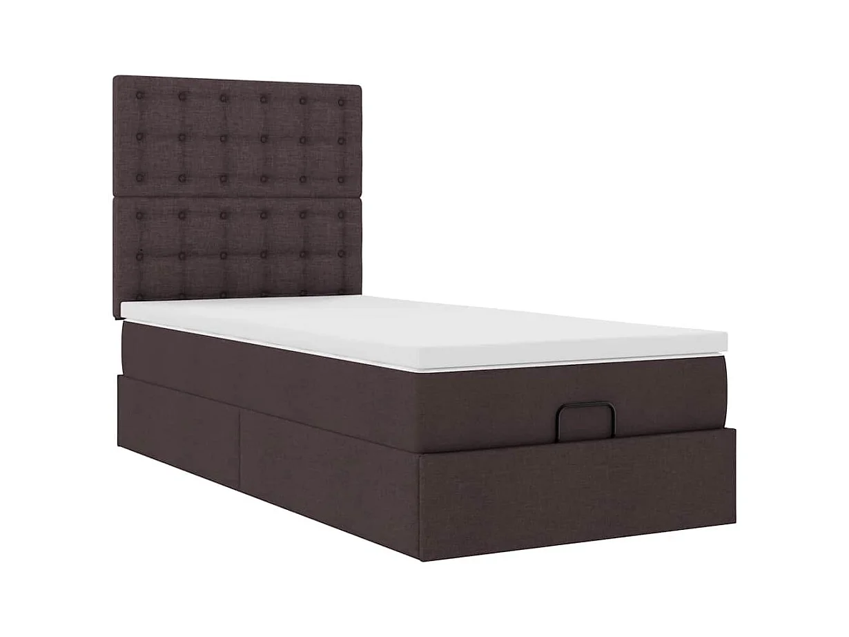 Cadre de lit ottoman avec matelas marron foncé 100x200 cm tissu