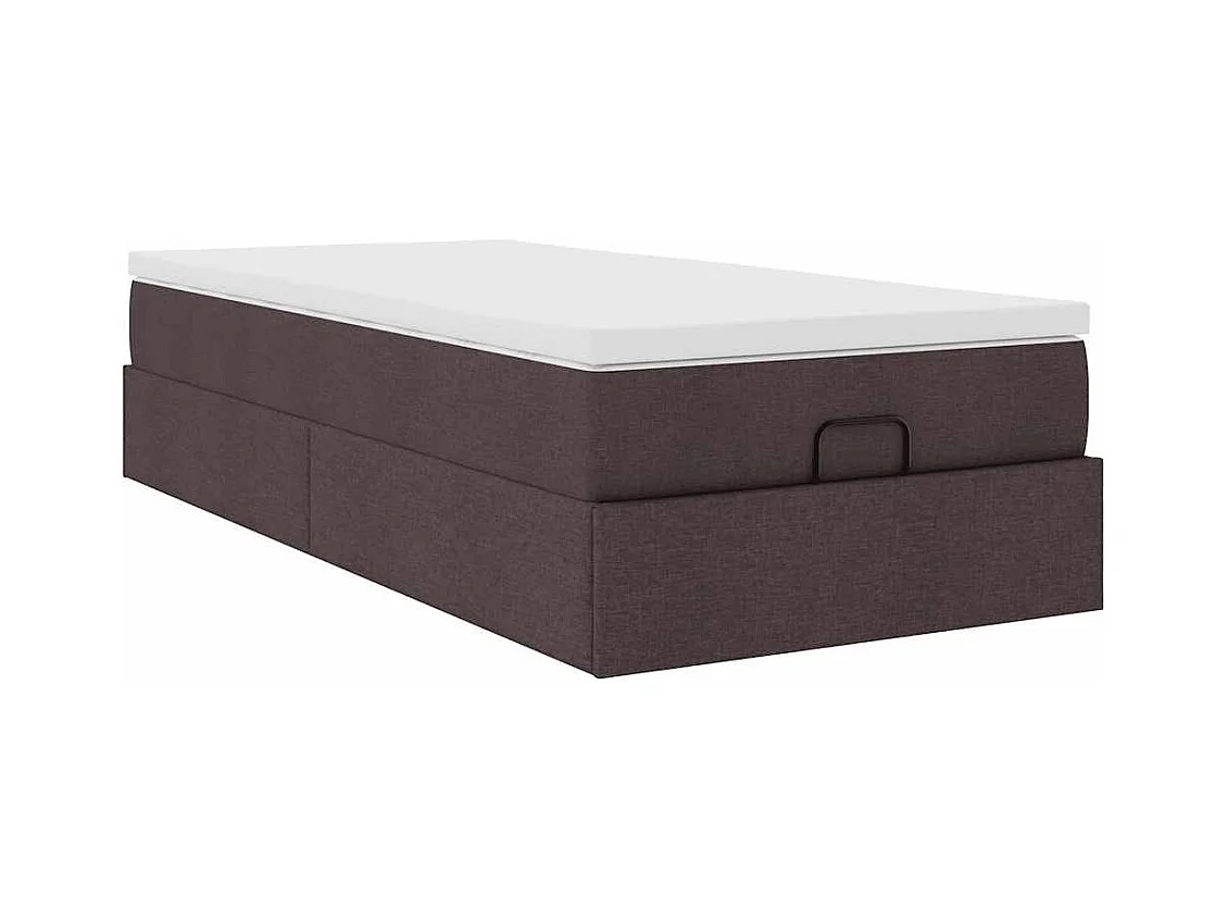 Lit ottoman avec matelas marron foncé 100x200 cm tissu