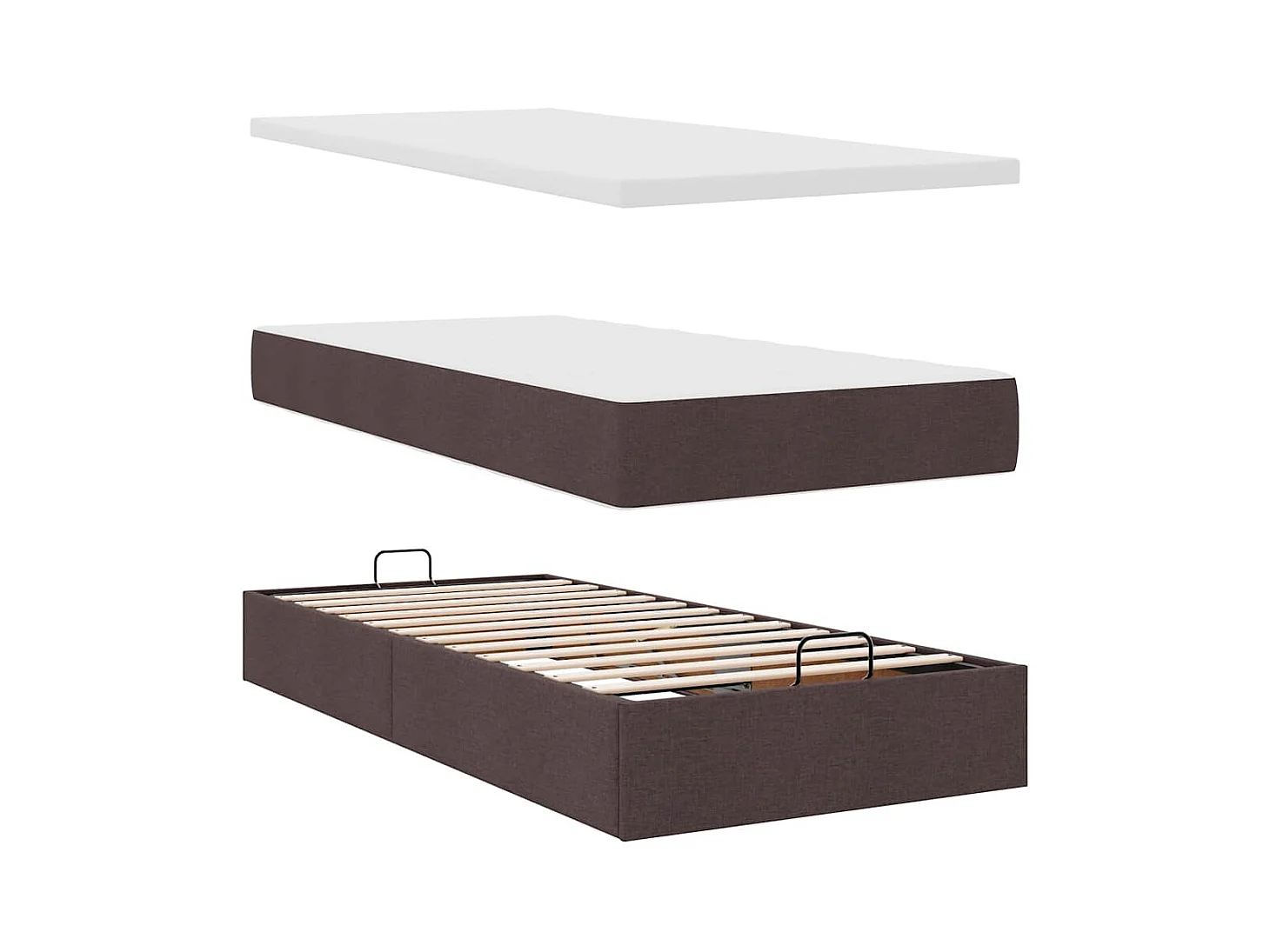Cadre de lit ottoman sans matelas marron foncé 100x200 cm tissu