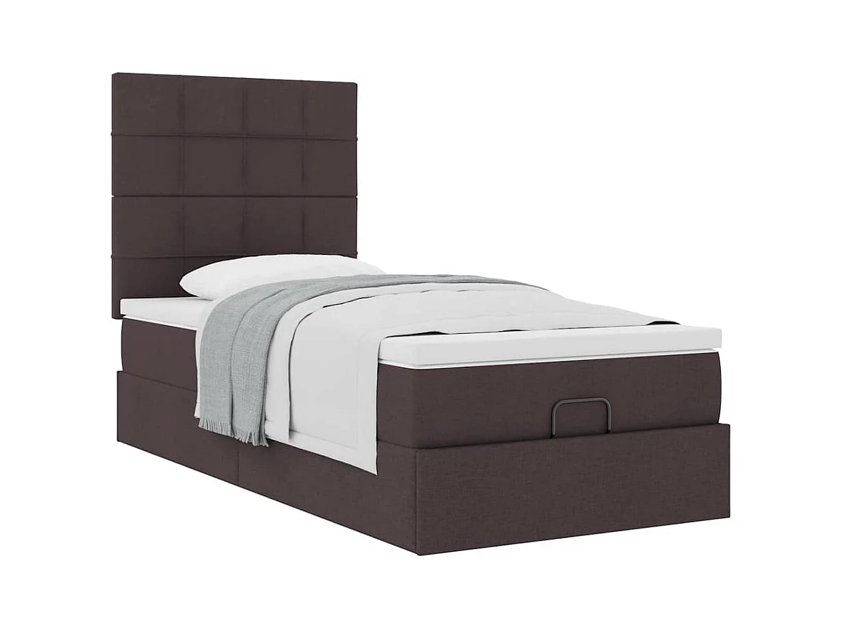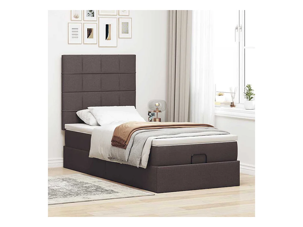 Cadre de lit ottoman avec matelas marron foncé 100x200 cm tissu