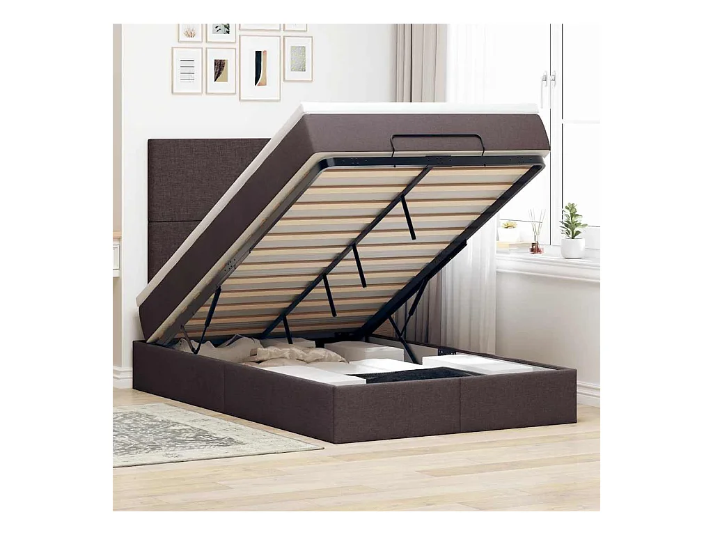 Cadre de lit ottoman sans matelas marron foncé 120x190 cm tissu