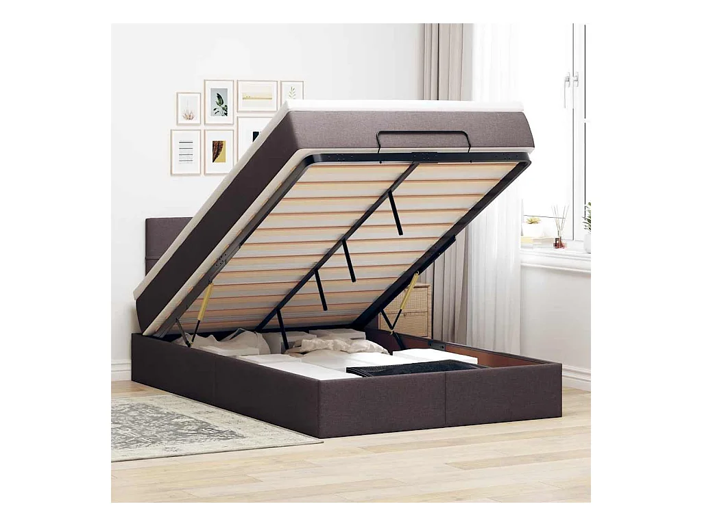 Cadre de lit ottoman sans matelas marron foncé 120x190 cm tissu