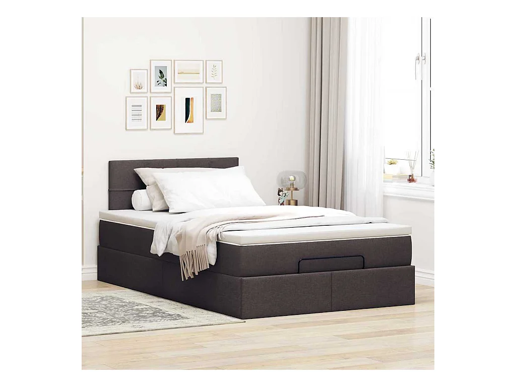 Cadre de lit ottoman avec matelas marron foncé 120x190 cm tissu