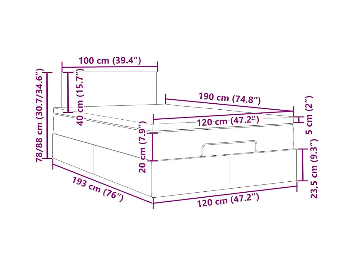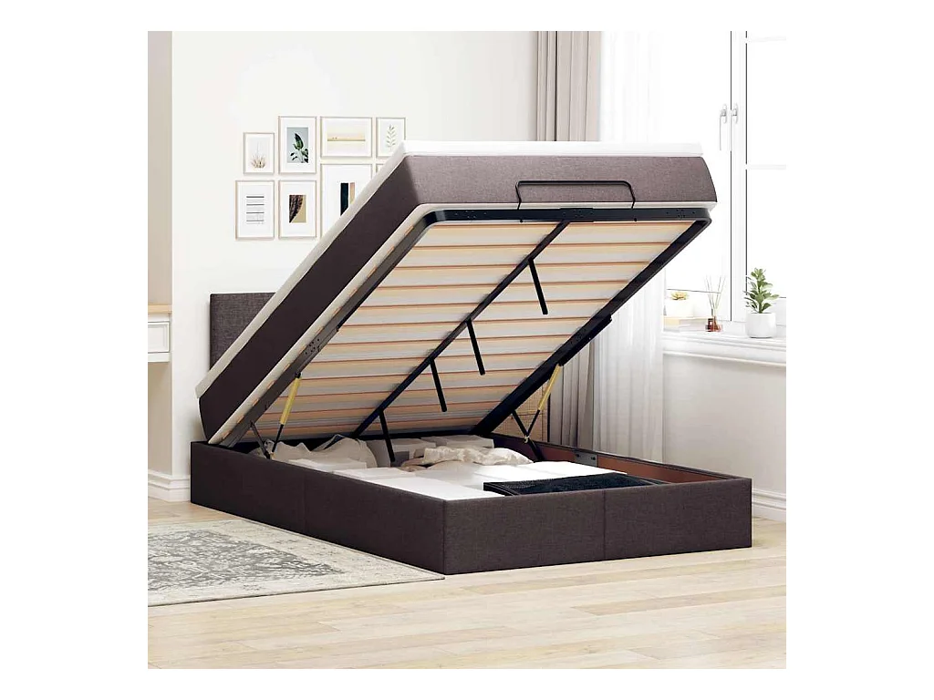 Cadre de lit ottoman sans matelas marron foncé 120x190 cm tissu
