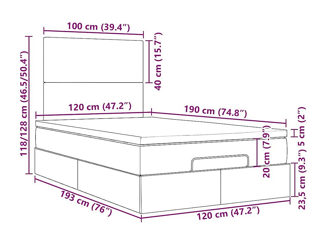Cadre de lit ottoman avec matelas marron foncé 120x190 cm tissu