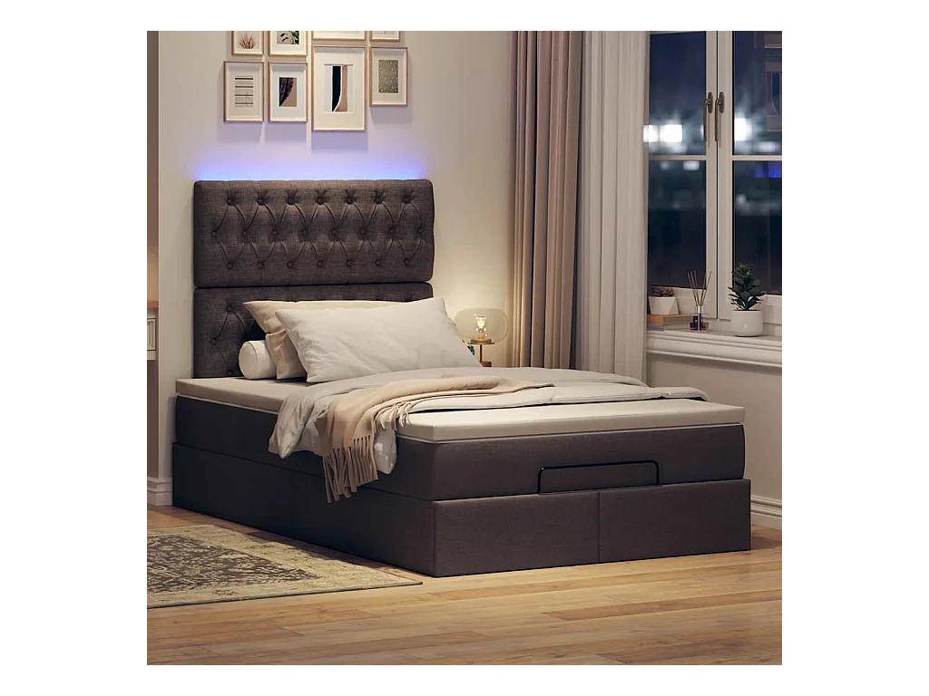 Cadre de lit ottoman avec matelas marron foncé 120x200 cm tissu